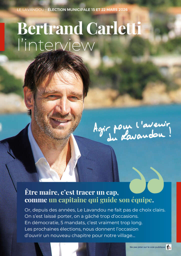 Nous distribuons dans tous les quartiers un document qui vous permettra de mieux connaître Bertrand Carletti, notre candidat tête de liste aux élections municipales des 15 et 22 mars prochains.